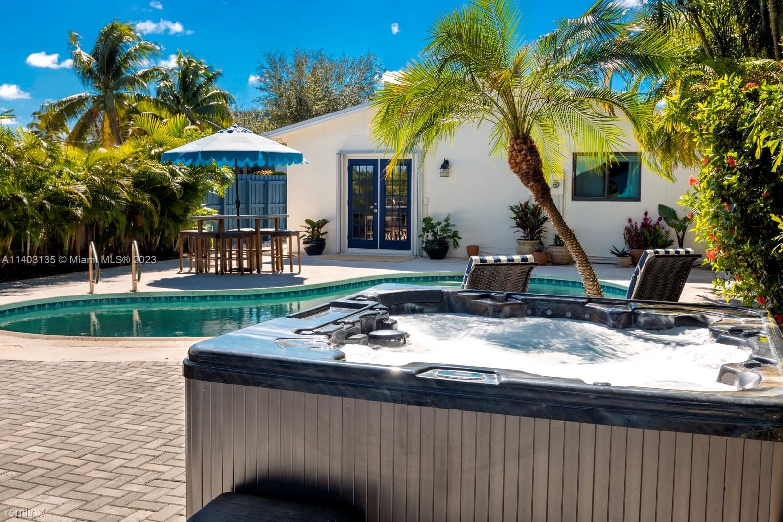 Rent this beautiful 3 bedroom/2 bath oasis + den/office, complete with pool and hot tub. Rent for a minimum of 3 months or up to a year. Nestled near Wilton Drive, Downtown Oakland Park, the beach, and I-95. Discover serenity in your private, tropical backyard, equipped with a covered seating area and lounge furniture. The 4th bedroom, adjacent to the pool, can serve as an ideal office or den. Landlord pays for pool and lawn upkeep, pest control, and WiFi. Tenants cover electric and water. The property can be rented furnished. Includes full size washer/dryer. Lots of closets for storage. To Move In: 1st month and 2 security deposits, and a credit/background check. 1 small pet welcome (up to 20lbs). No smoking. MINIMUM CREDIT SCORE 650. TENANT REQUIRED TO PAY FOR BACKGROUND & CREDIT CHECK. (RLNE8121456)